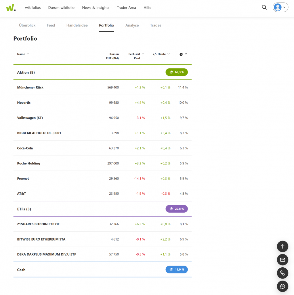 Expertly Managed Portfolio – Curated with precision to maximize returns. ✅ Full Transparency – Track every trade and decision in real time. ✅ Diversification – A balanced mix of assets to minimize risk. ✅ Stable Income & Growth Potential – Dividend stocks provide reliable returns, while growth stocks drive long-term value. ✅ Invest with Ease – Accessible through Wikifolio certificates, tradable on major exchanges.